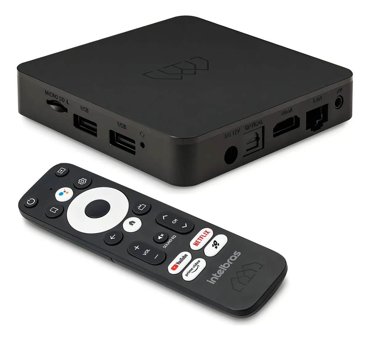 Com design moderno e controle remoto dedicado, o Smart Media Box Pro oferece praticidade no uso diário, além de múltiplas conexões para diferentes tipos de dispositivos e mídias.